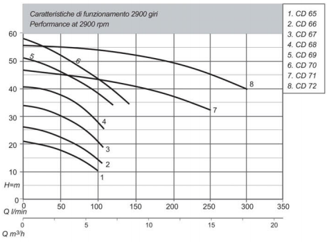 Capaciteit: 0,6 - 6,3 m³/h @ 26,5 - 14 mwk